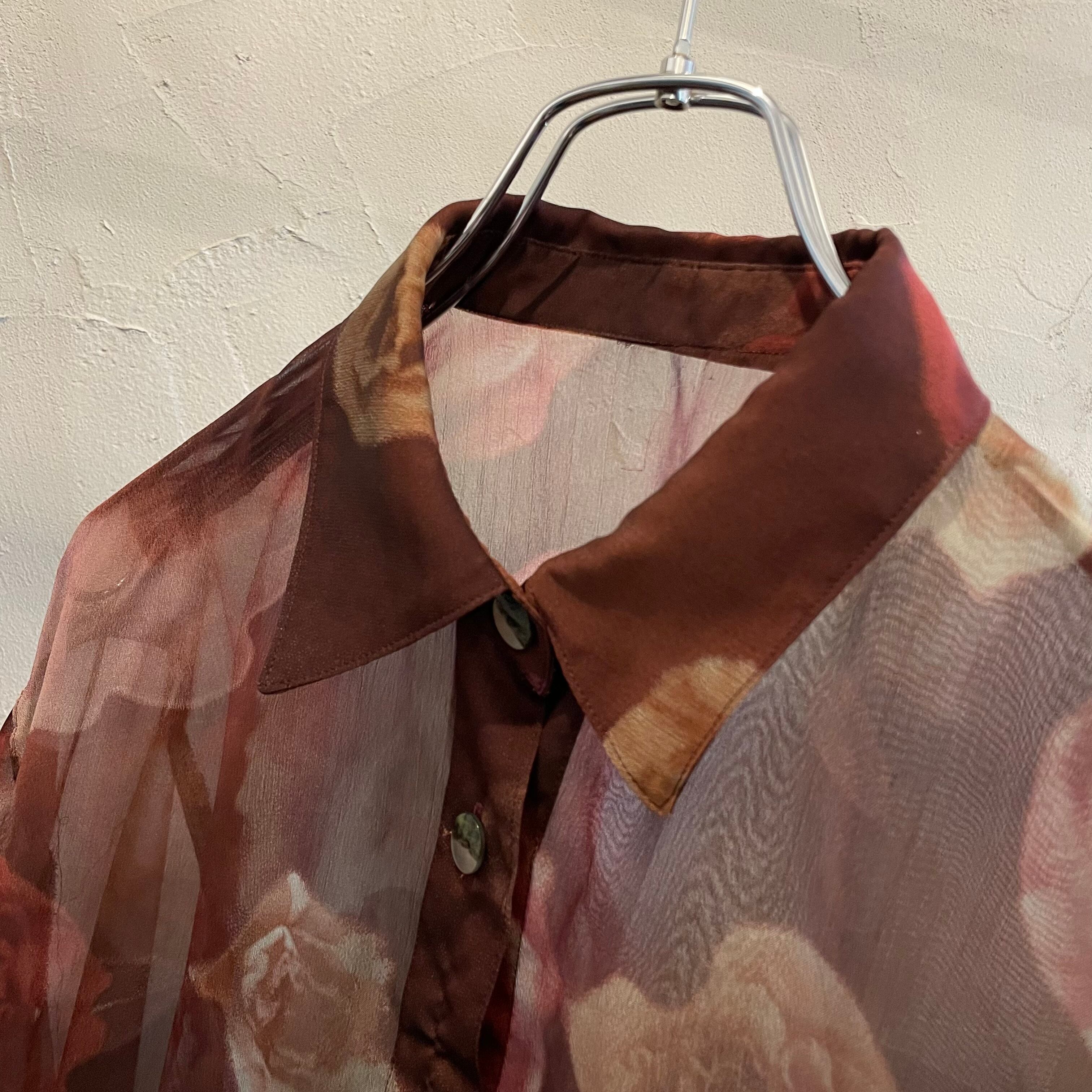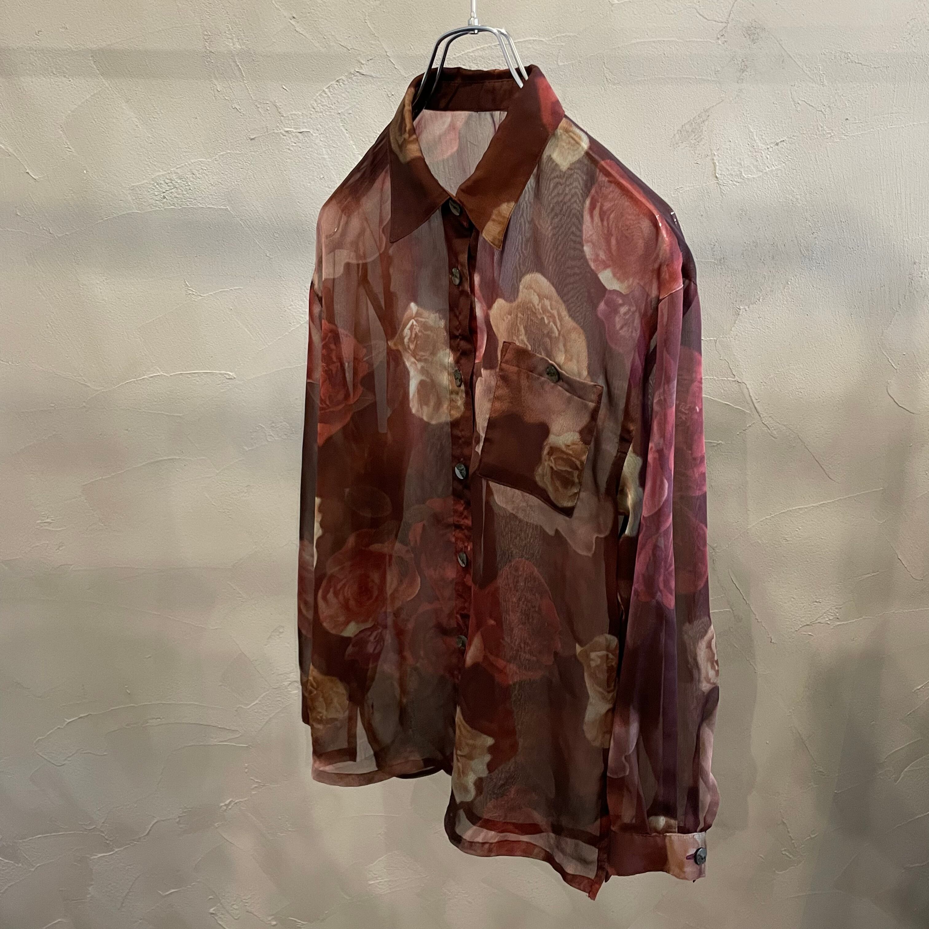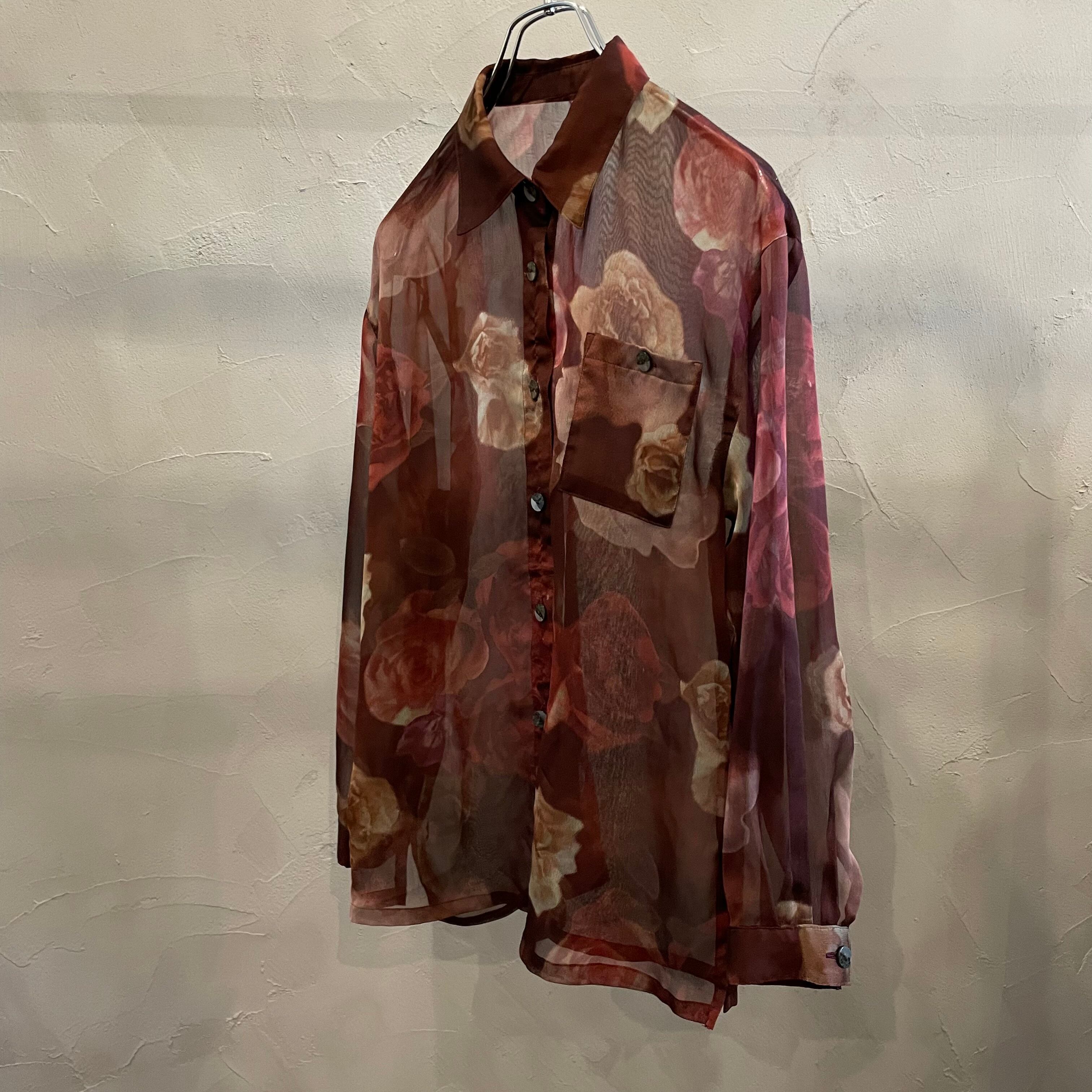 see-through flower shirt / 90's