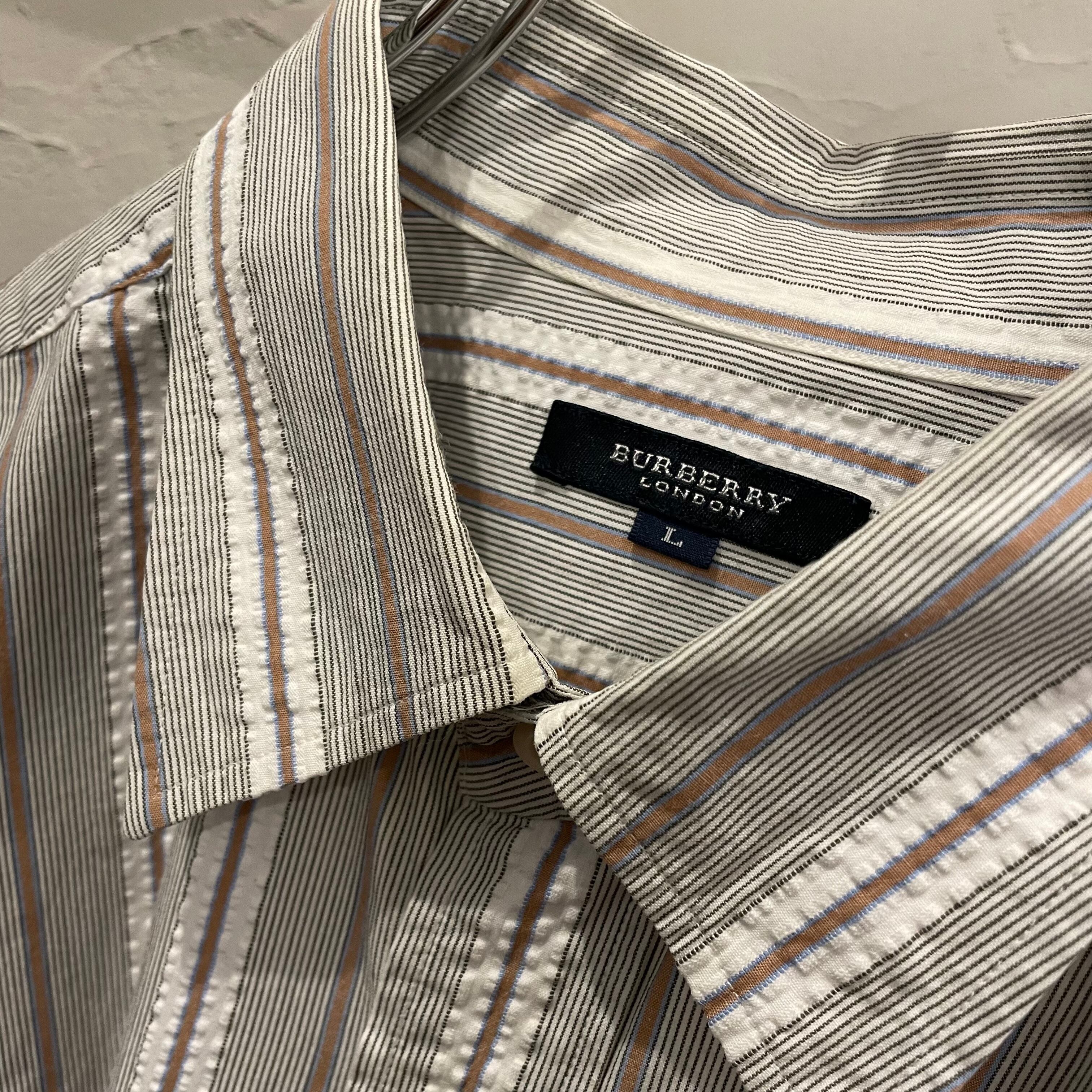 BURBERRY LONDON / embroidery stripe shirt / 90's