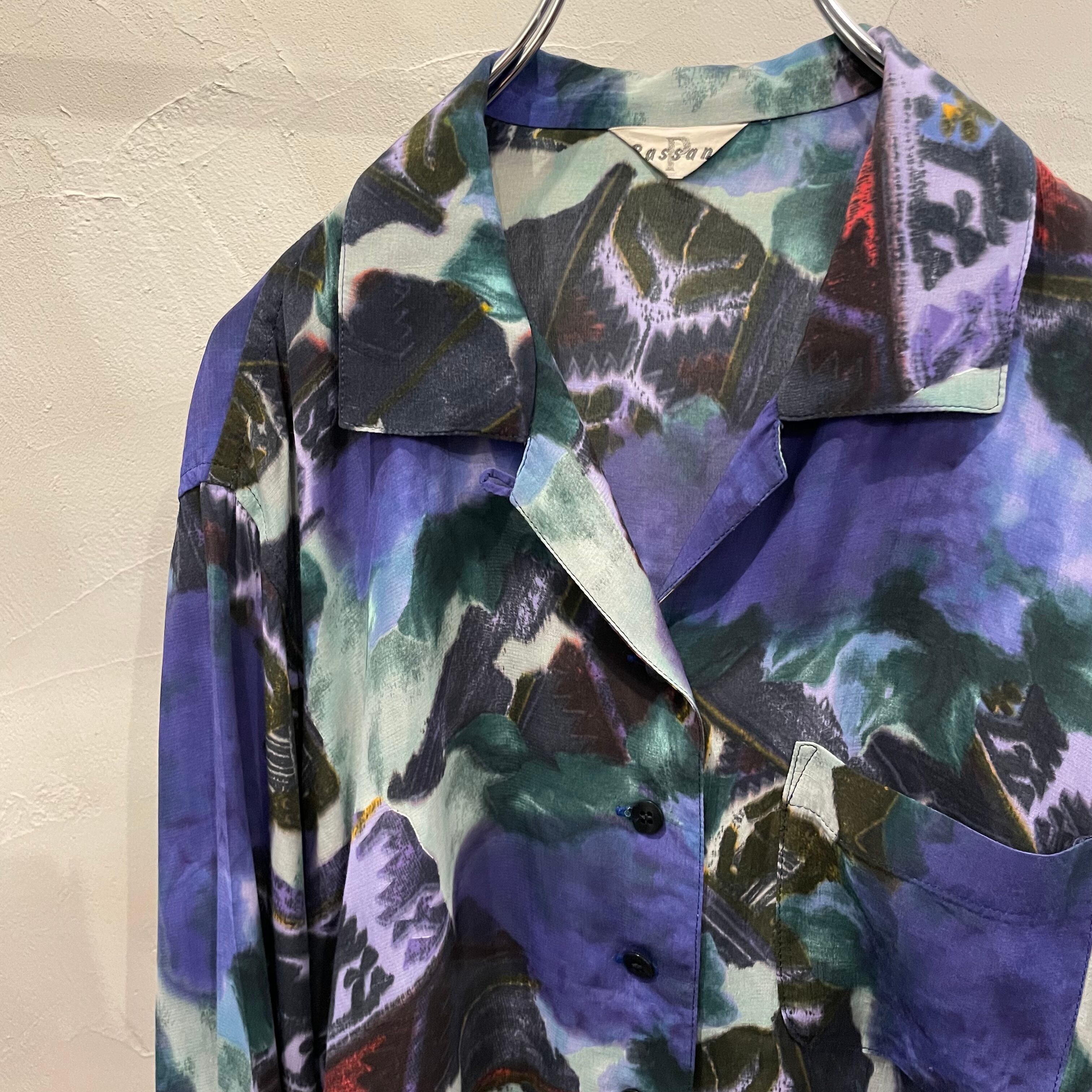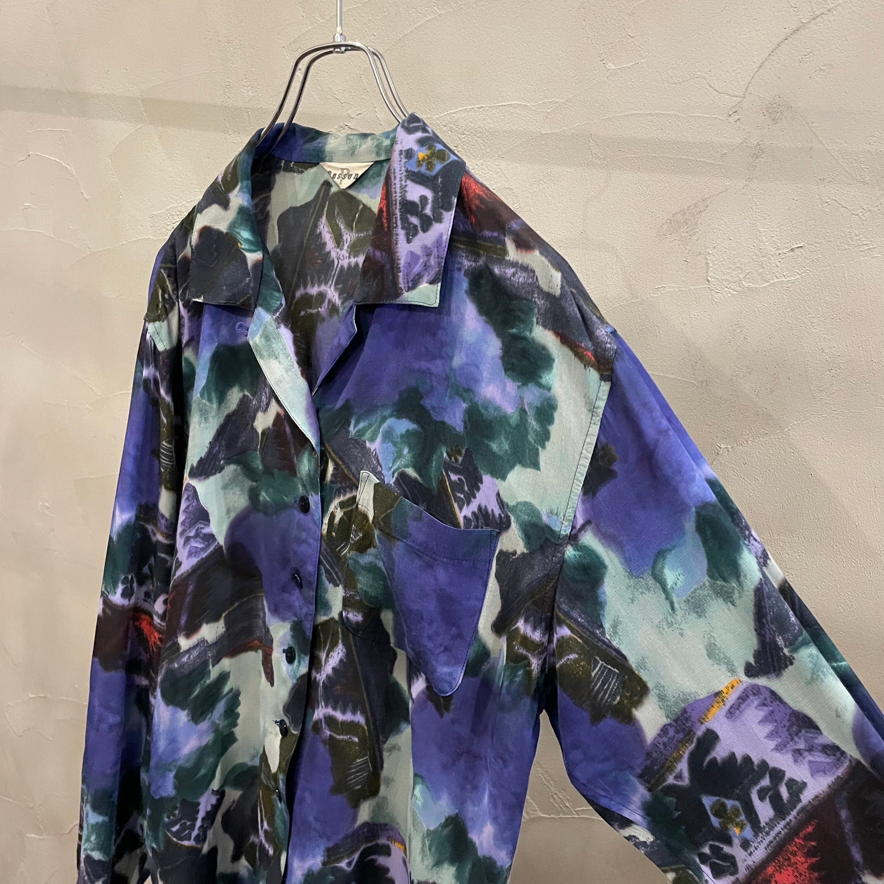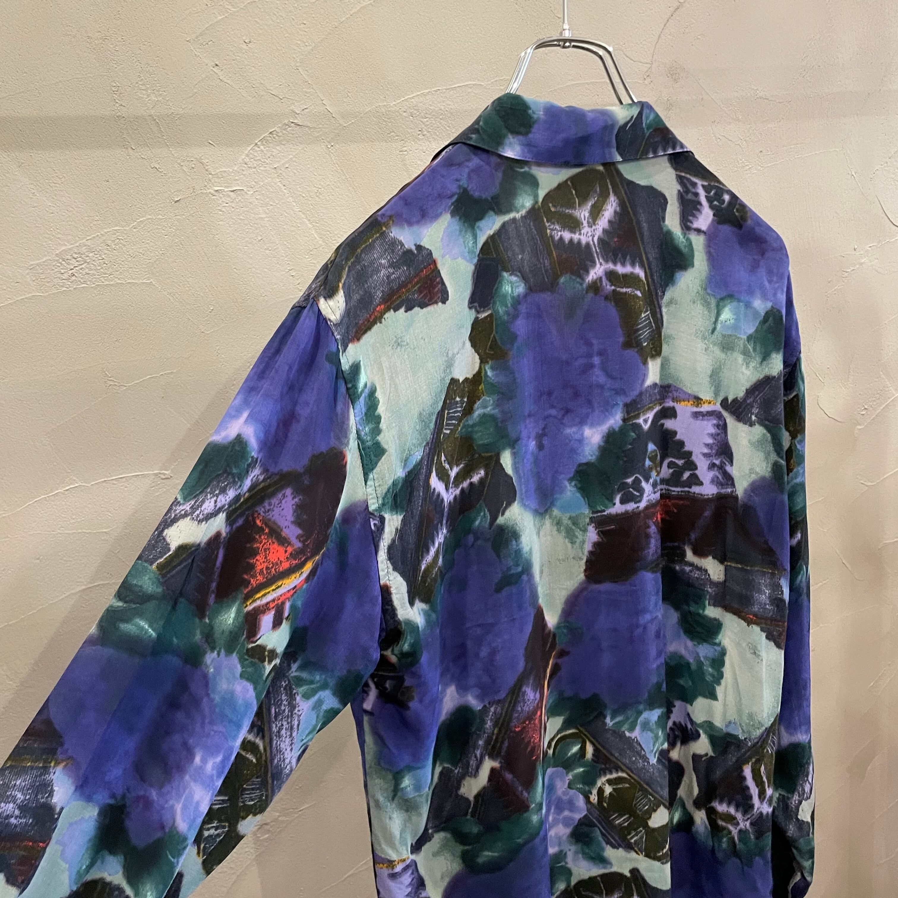 open collar pattern shirt / 90's