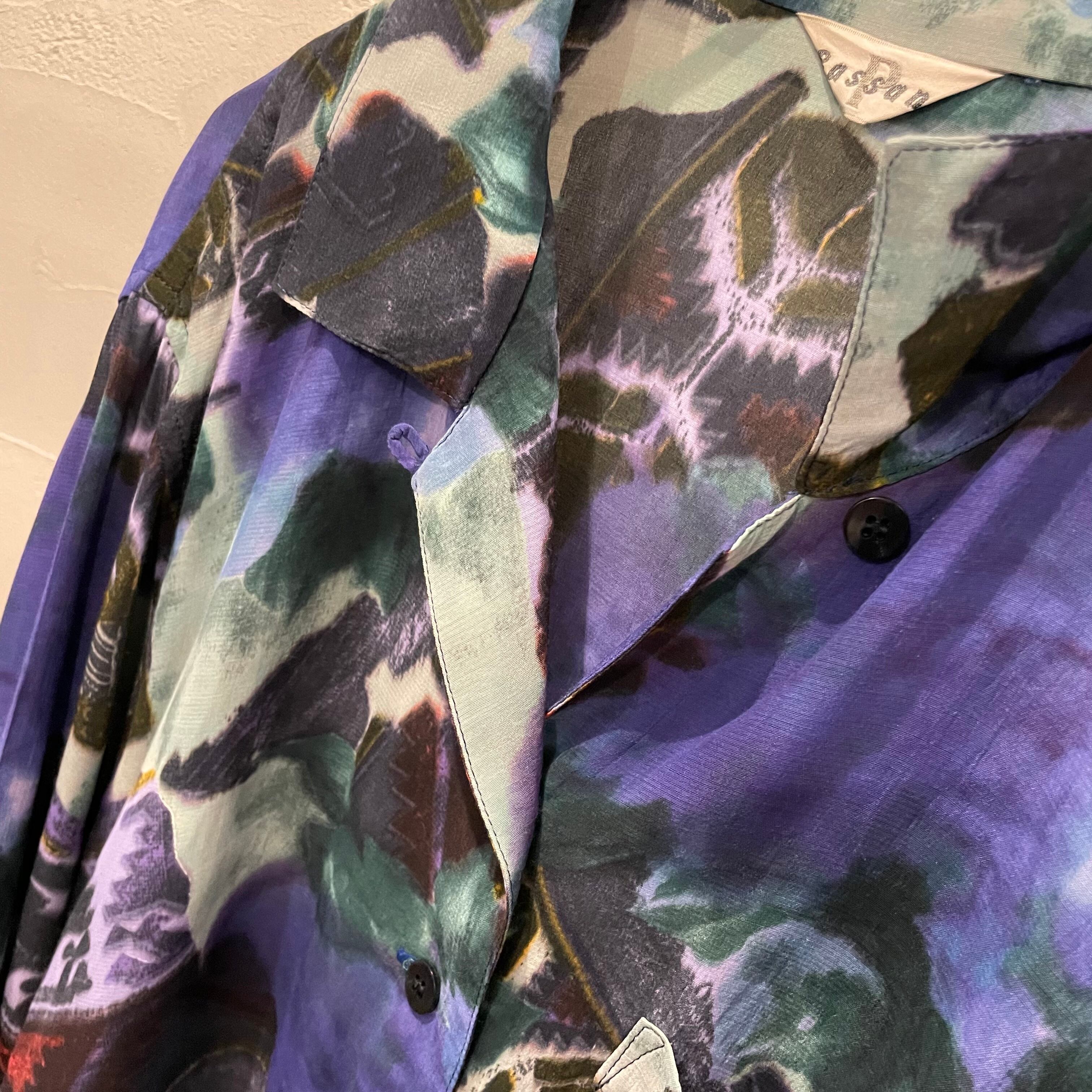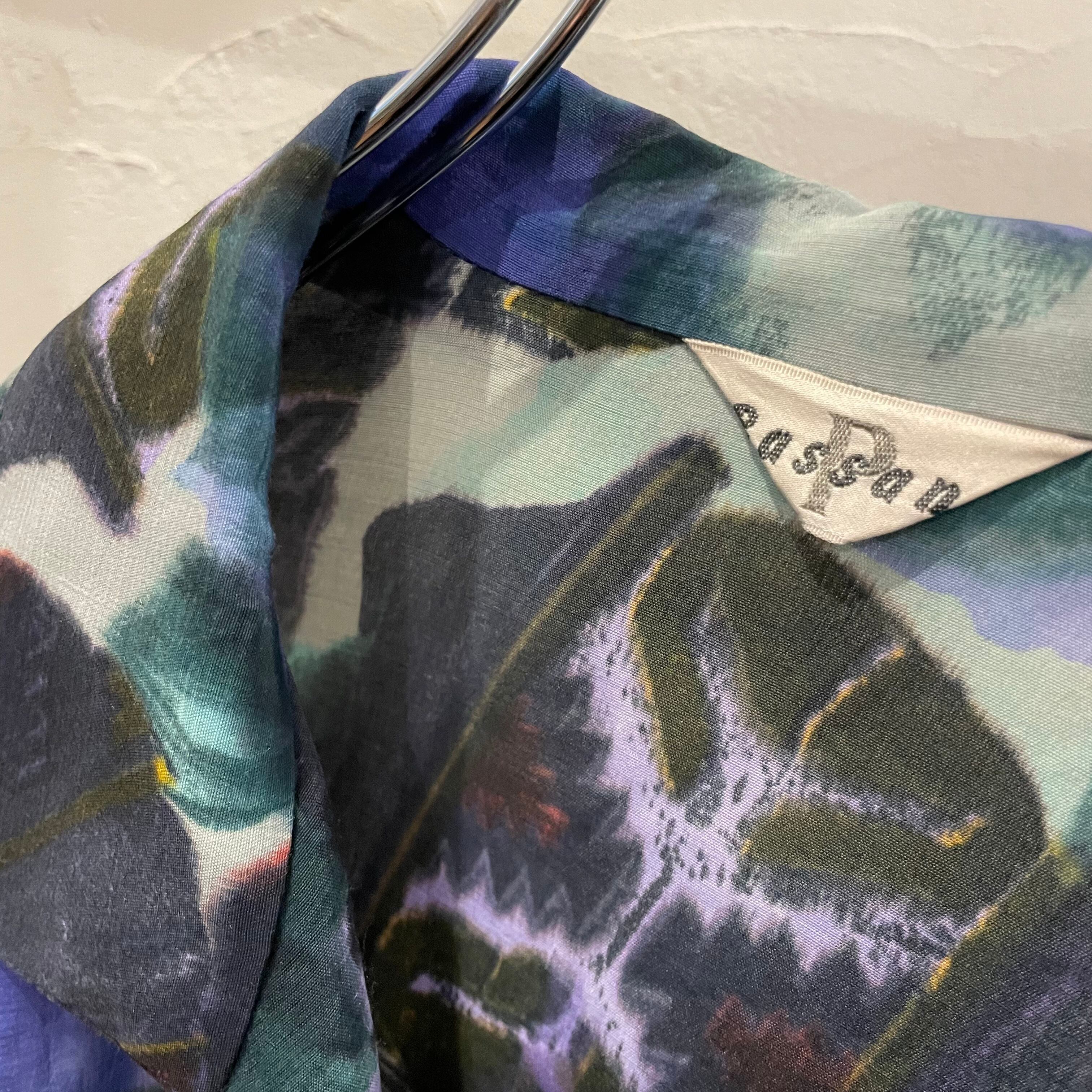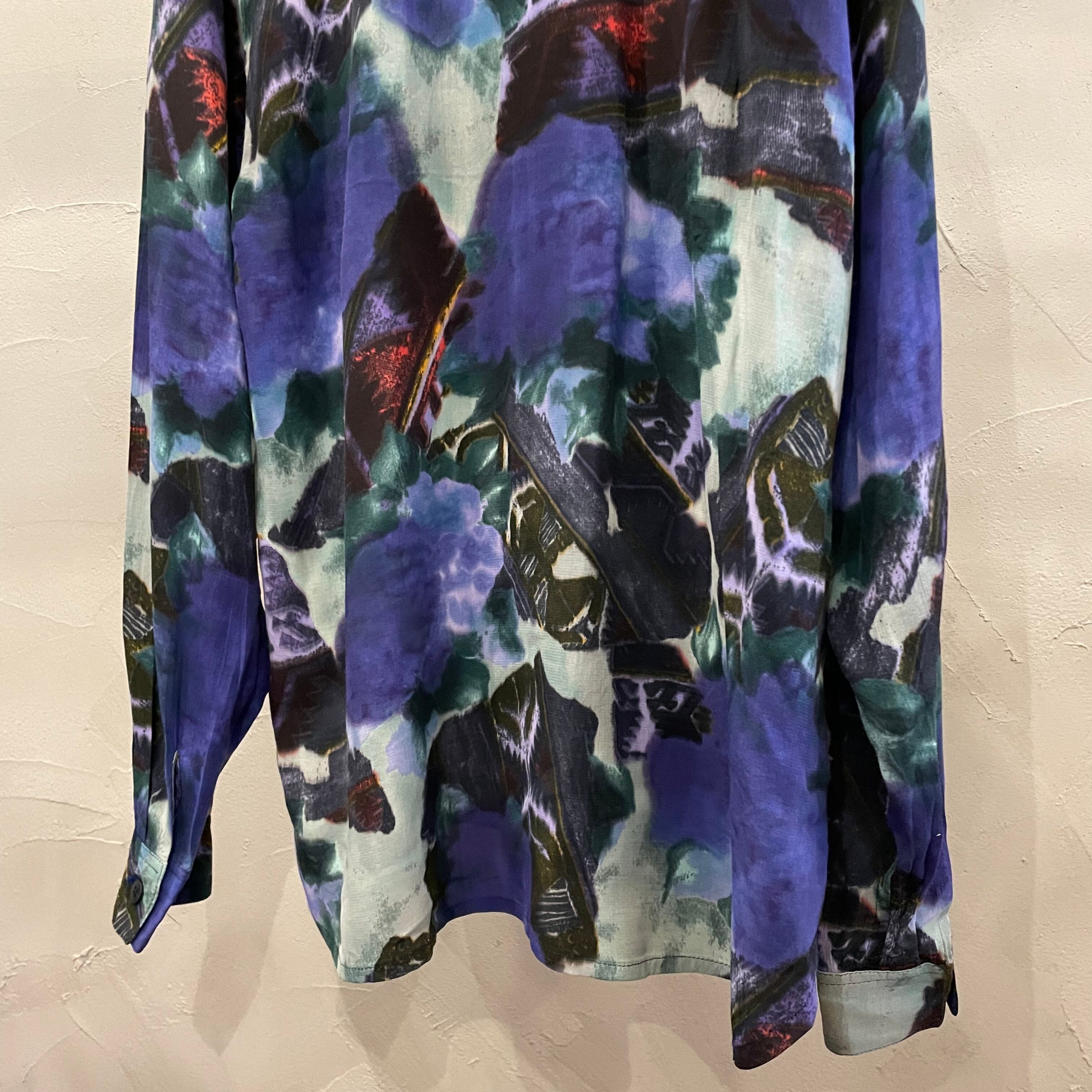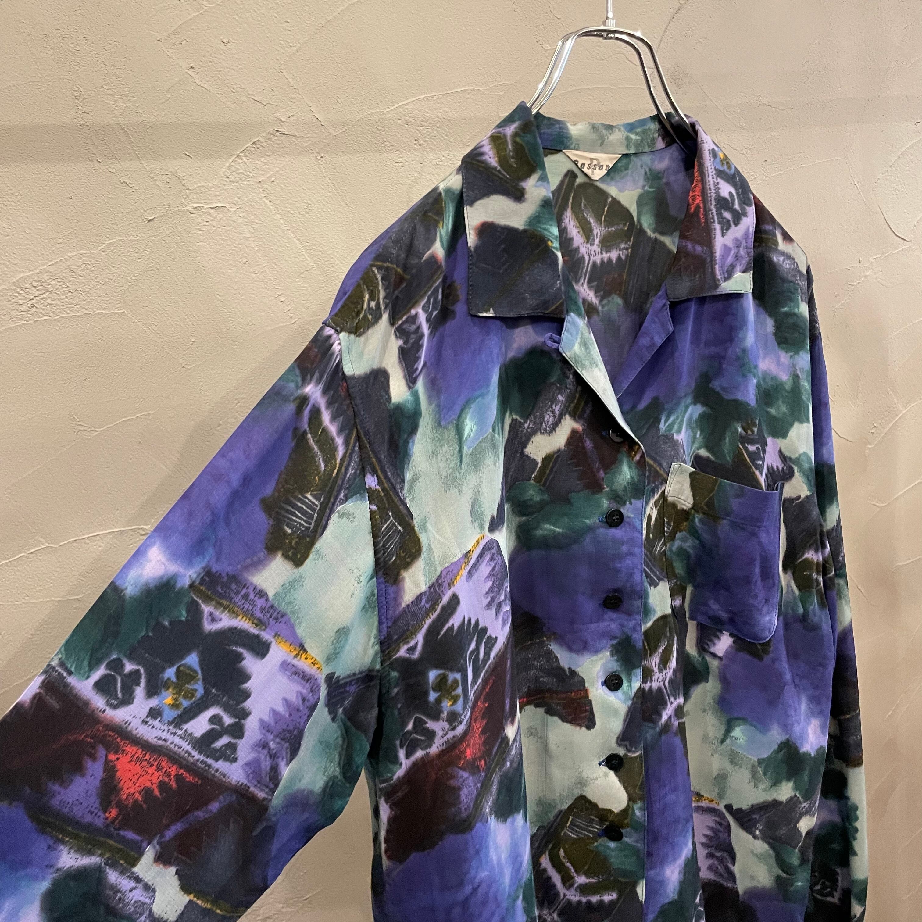 open collar pattern shirt / 90's