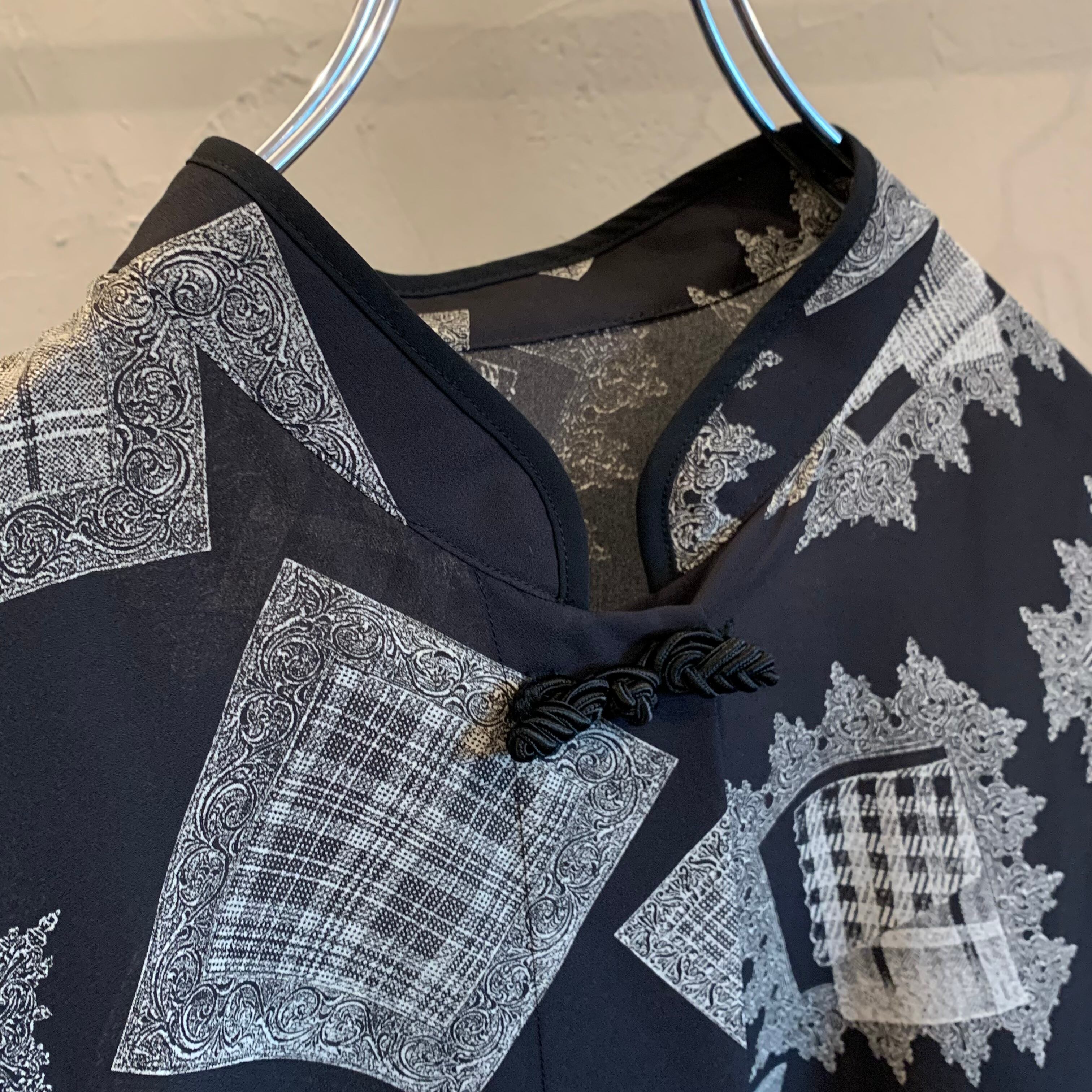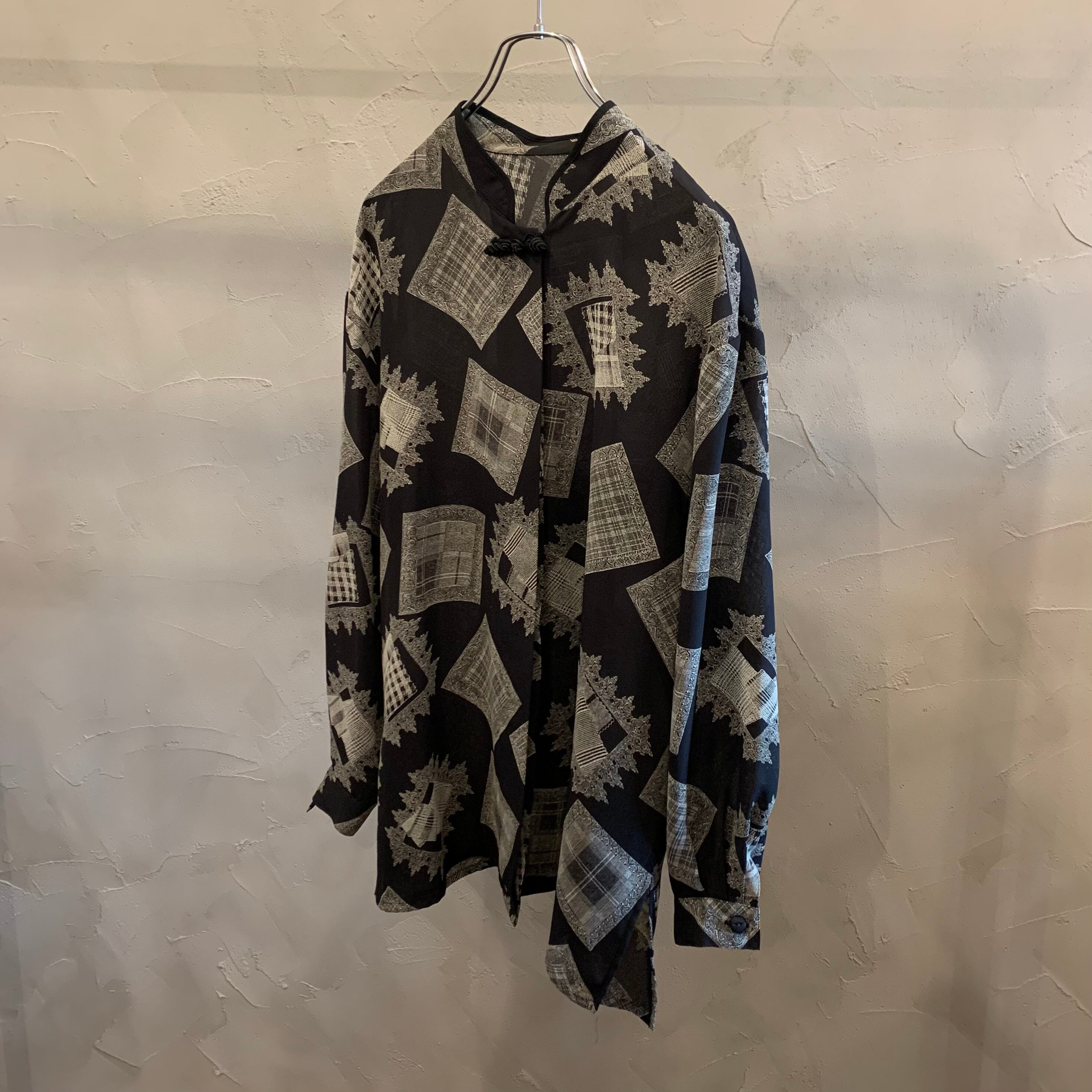 china button pattern shirt / 90's