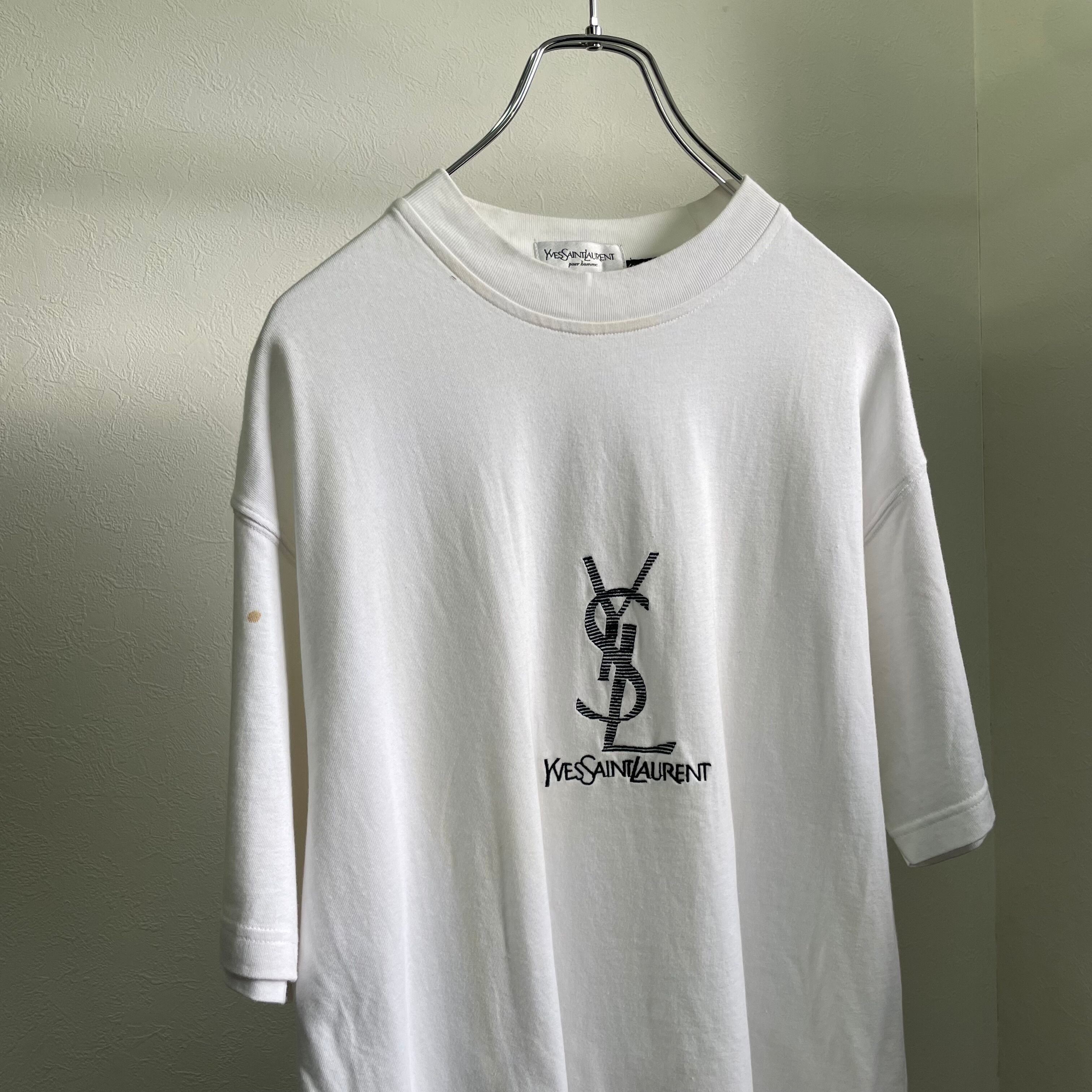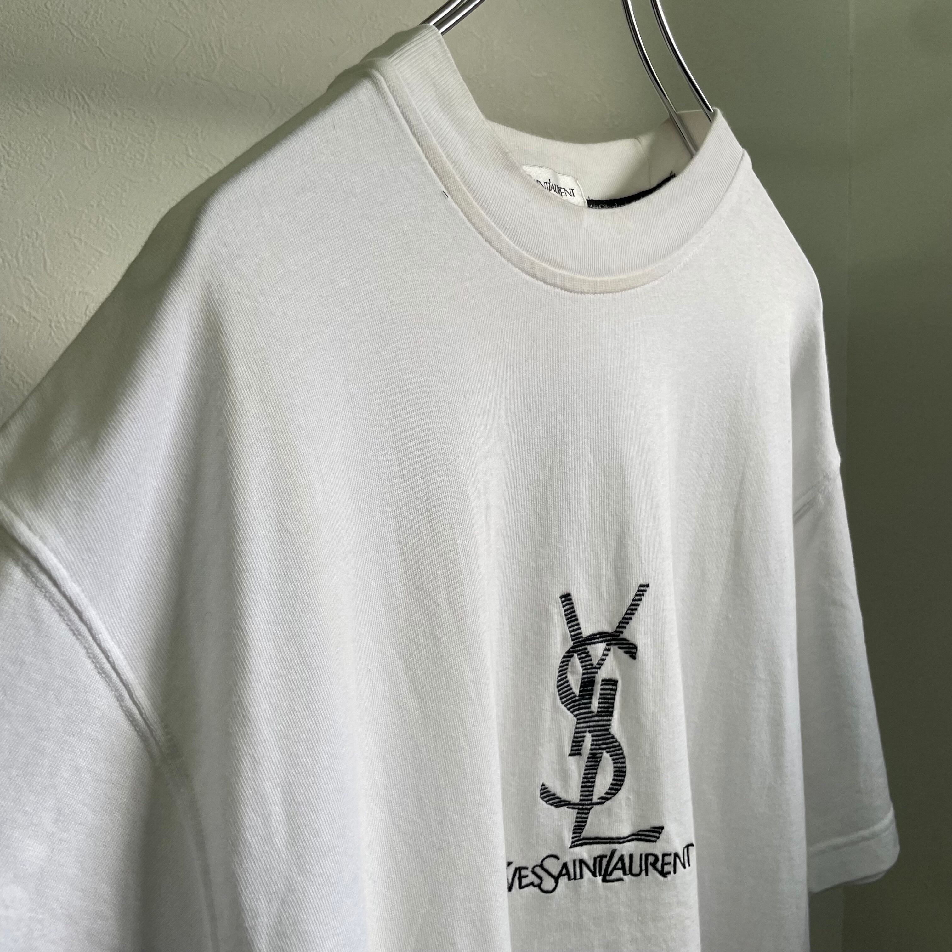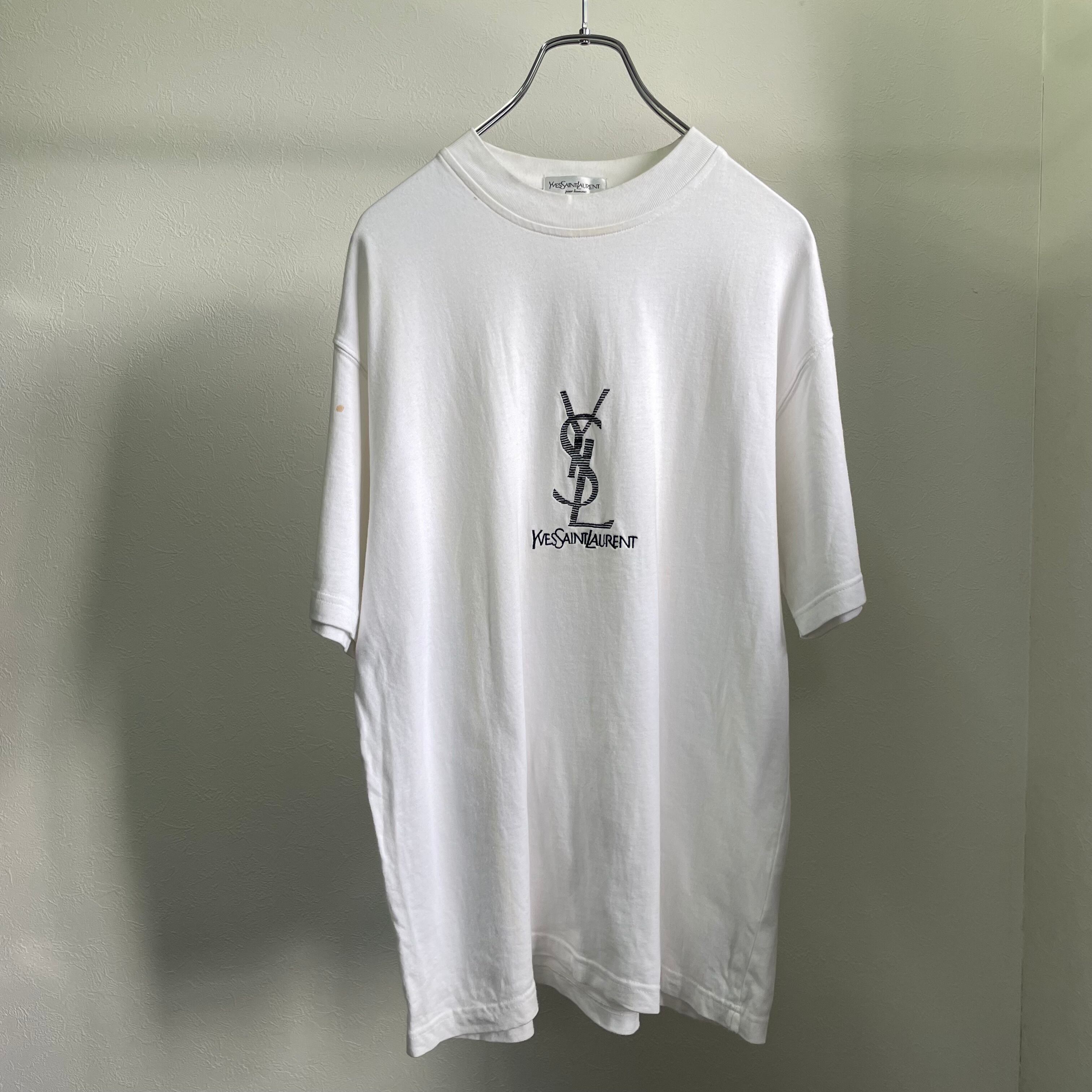 YVES SAINT LAURENT / logo embroidery T-shirt / 90's